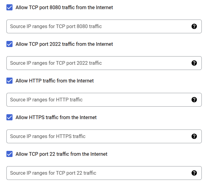 Add network traffic restrictions and enable rules based on your specific security requirements. Here what the proposed ports are used for: