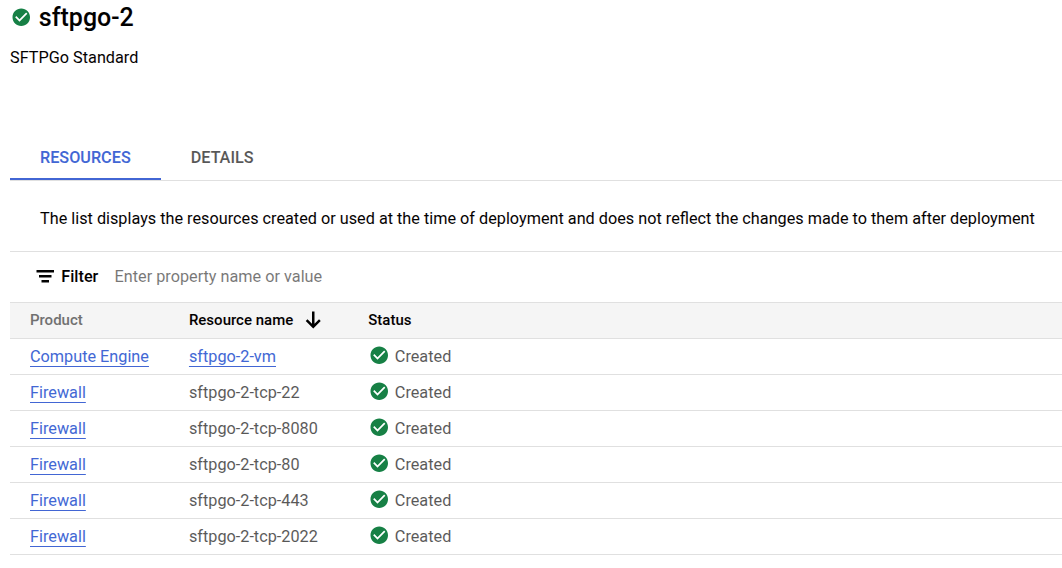 By clicking on the deployed Compute Engine, you can view the IP address of your new SFTPGo installation.