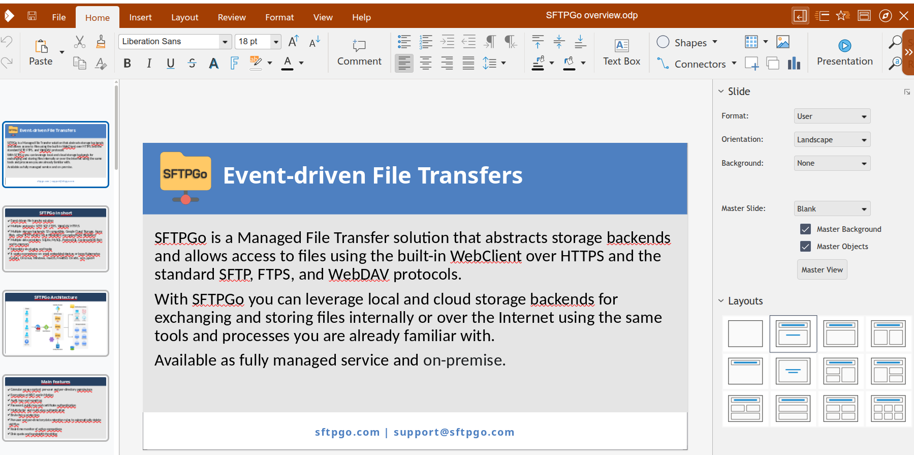 This feature enables seamless document editing, and real-time collaboration directly within the SFTPGo WebClient. Multiple users can work on the same document simultaneously, with live updates visible to everyone as changes are made.